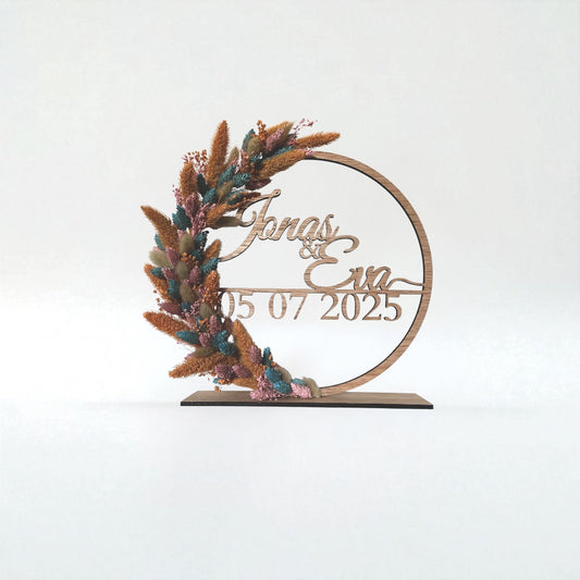 Couronne en bois sur mesure avec fleurs séchées – Décoration élégante pour mariages et anniversaires